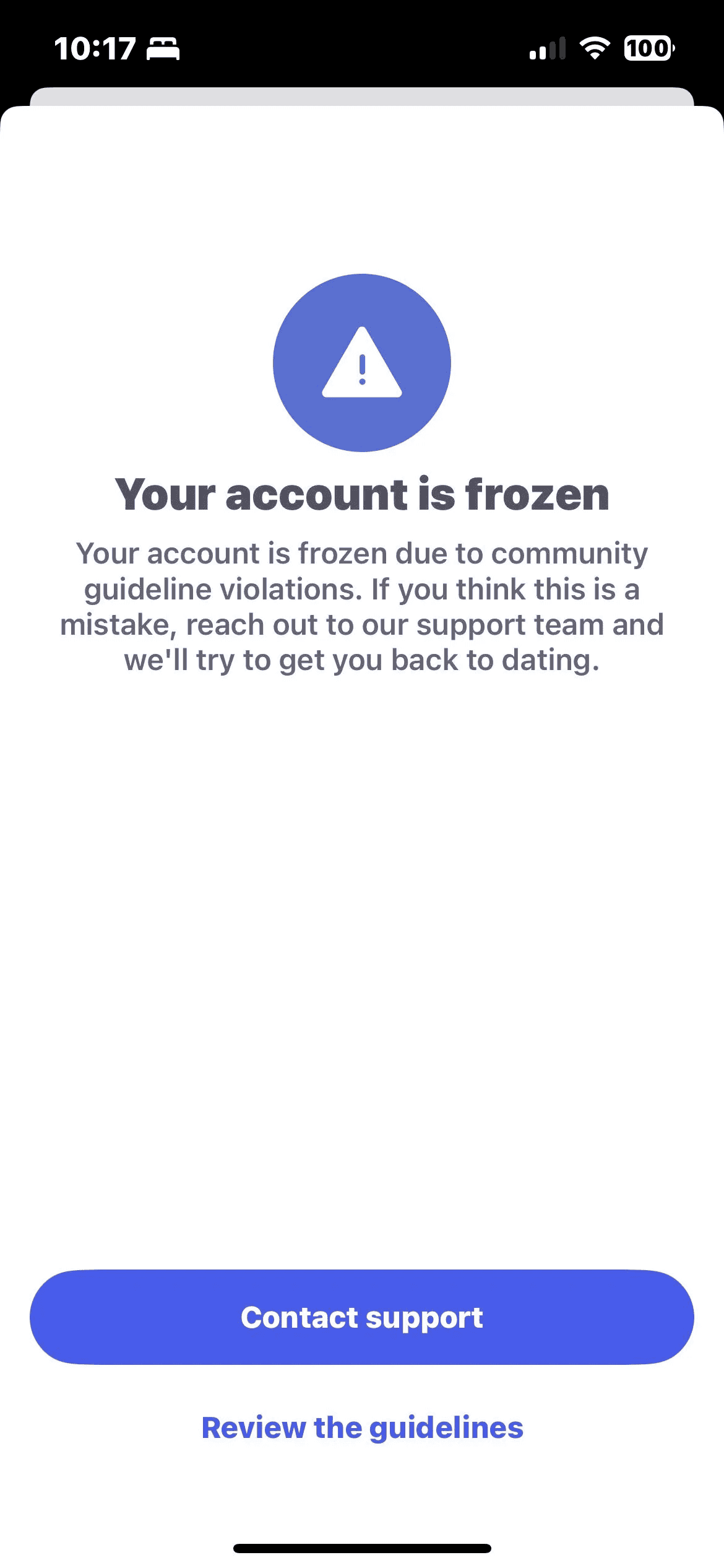 The algorithms didn’t get advanced enough to understand human jokes, because getting your account frozen on CoffeeMeetsBagel can happen to any of us.