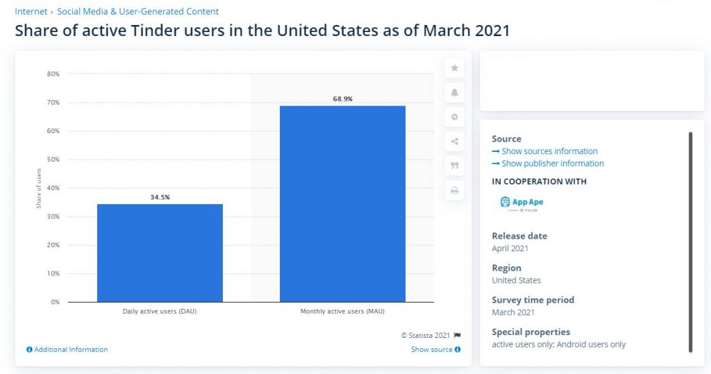 Statista shows information on Tinder users in the US 2021 – User and Gender Statistics