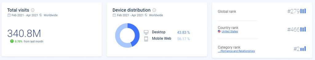 According to Statista, in the first quarter of 2020, Tinder registered 6.03 million worldwide paid subscribers.